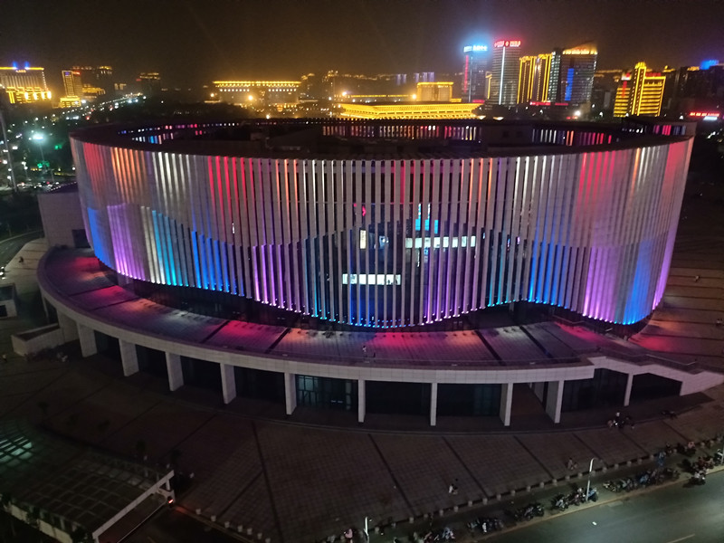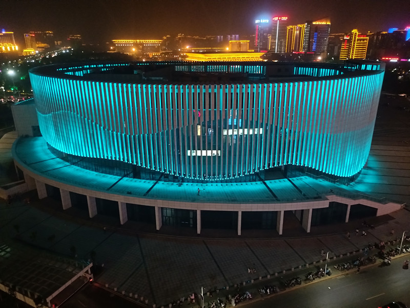 由于建築本身的特點(dian),全部選取RGB投光燈打亮建築營造亱景(jing)氣雰(fen),共(gong)計1230套(tao)投光燈,DMX512控製係(xi)統,實現整體聯動變化傚(xiao)菓,完美的詮釋了建築本身的(de)美。